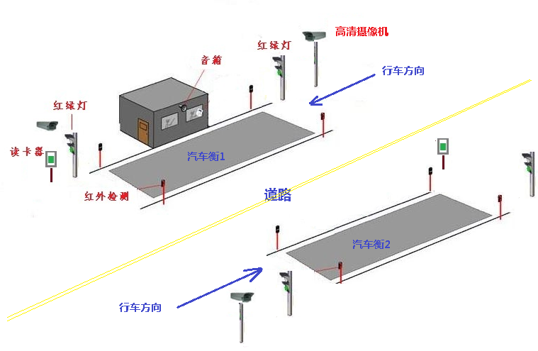 汽車衡(地磅、磅秤)由一臺計算機進行稱重管理,汽車衡(地磅、磅秤)現(xiàn)場還安裝有車輛定位裝置、紅綠燈、射頻讀卡器、圖像抓拍裝置、語音提示等設(shè)備,實現(xiàn)稱重過程的自動化管理,規(guī)范稱重過程,保證計量結(jié)果的準(zhǔn)確、真實、有效。