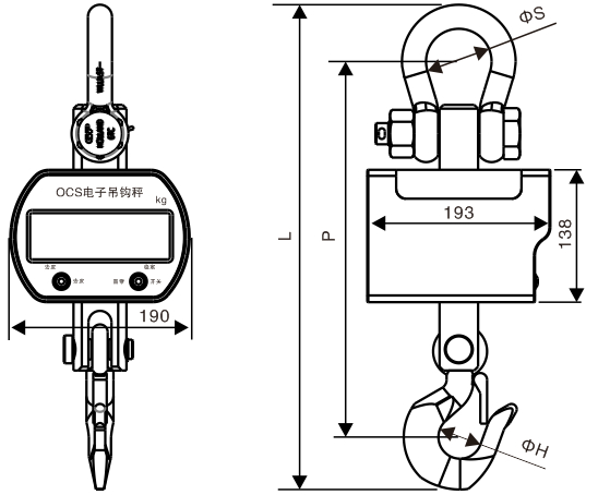 2.多狀態(tài)LED顯示, 請參見上圖, 在關機時將顯示吊秤的電量(按百分比)